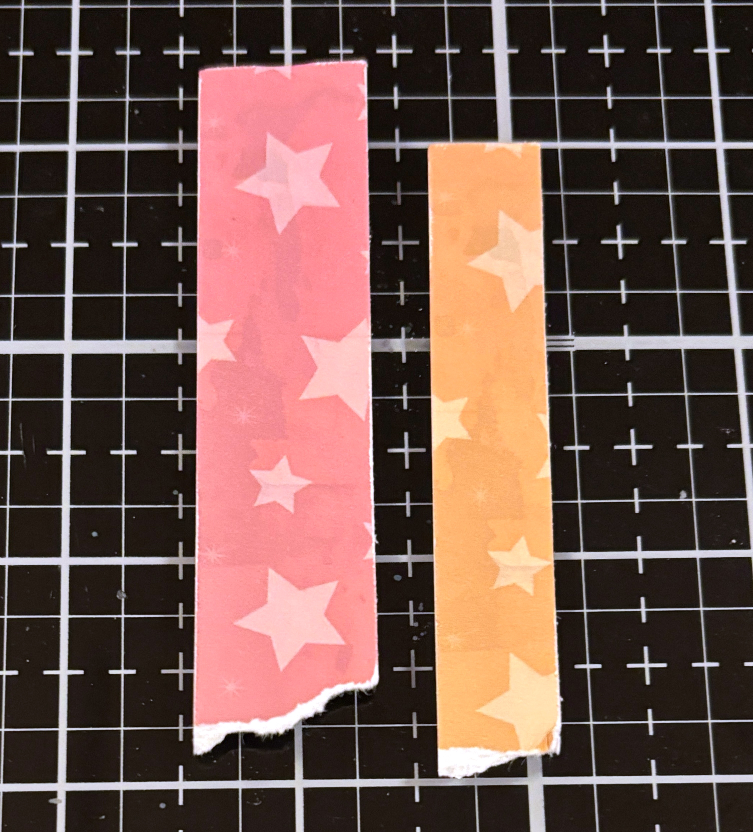 2. Next, you’ll need the Age Is Just a Number Solid Paper Number 1 and Solid Paper Number 3 from Simply Stated Design. Cut a piece from the Solid Paper Number 1 that measures ¾” x 3 ¼”. Tear ¼” from the bottom of the paper. Cut a piece from the Solid Paper Number 2 that measures ½” x 3”. Tear ¼” from the bottom of the paper. Sand the edges of both papers.